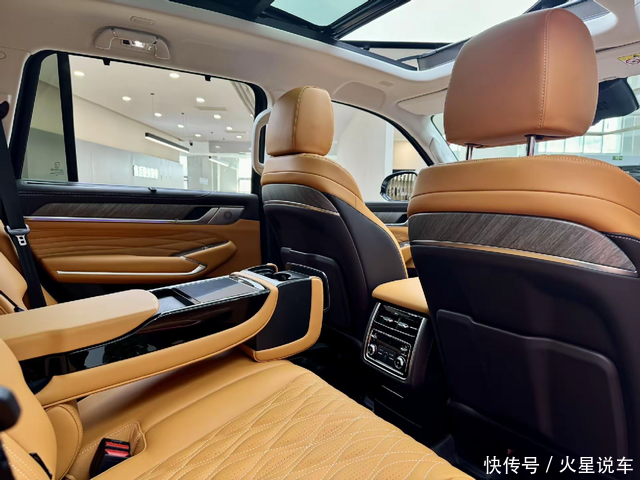 作为一台中大型SUV,坦克500 Hi4-Z有着5078*1934*1905mm的尺寸数据,轴距则为2850mm,整车接近角与离去角数据分别为29度和24度,能适应绝大多数越野路段的需求,座椅采用了Nappa真皮面料进行包覆,座椅也保持了相对宽大厚实的内部填充,以我180cm的身高进行实测,后排可获得2拳左右的宽敞空间,后排可进行放倒,让内部装载容积可提升至1489L。